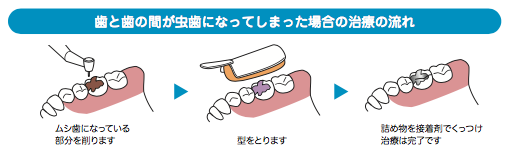 無症状の場合でも、歯科医院での診断かレントゲン写真で発見できる場合があります。ある程度進行してしまった歯と歯の間の虫歯は、取り除いた後、詰め物になってきます。